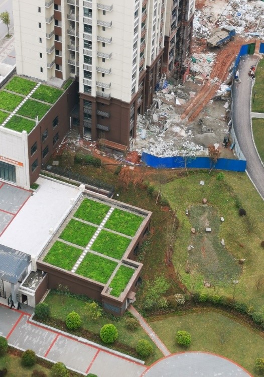 【項目規(guī)模】綠色屋頂實施區(qū)域為幼兒園屋頂、商業(yè)屋頂,施工面積1850.01㎡
